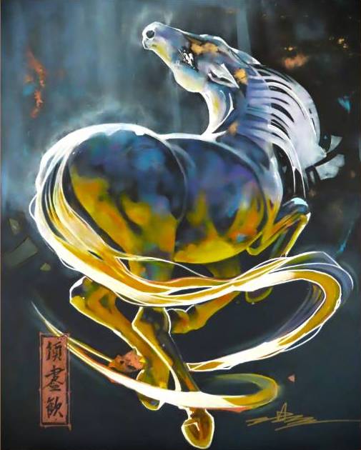 在奔騰的蒼穹之下,群馬以破雲之姿騰躍而起,象徵無畏、昂揚、超越自我的力量。〈青雲志〉以飄逸的鬃風與星宇般的光影,勾勒出勇者衝破束縛、直指天際的決心。