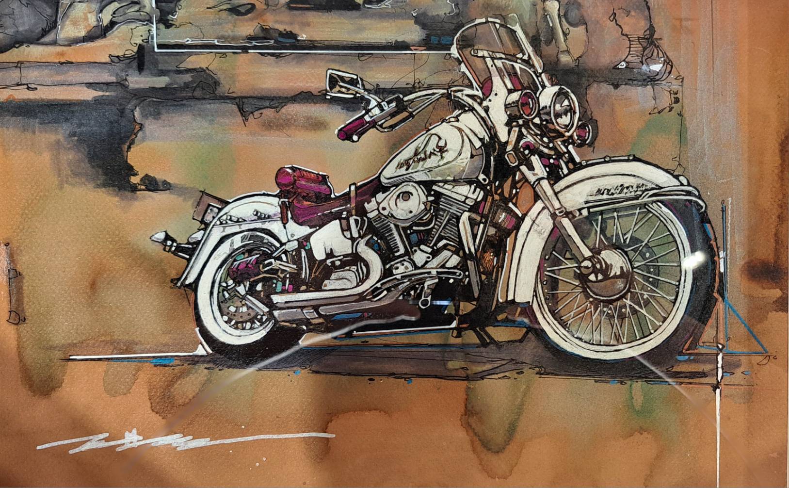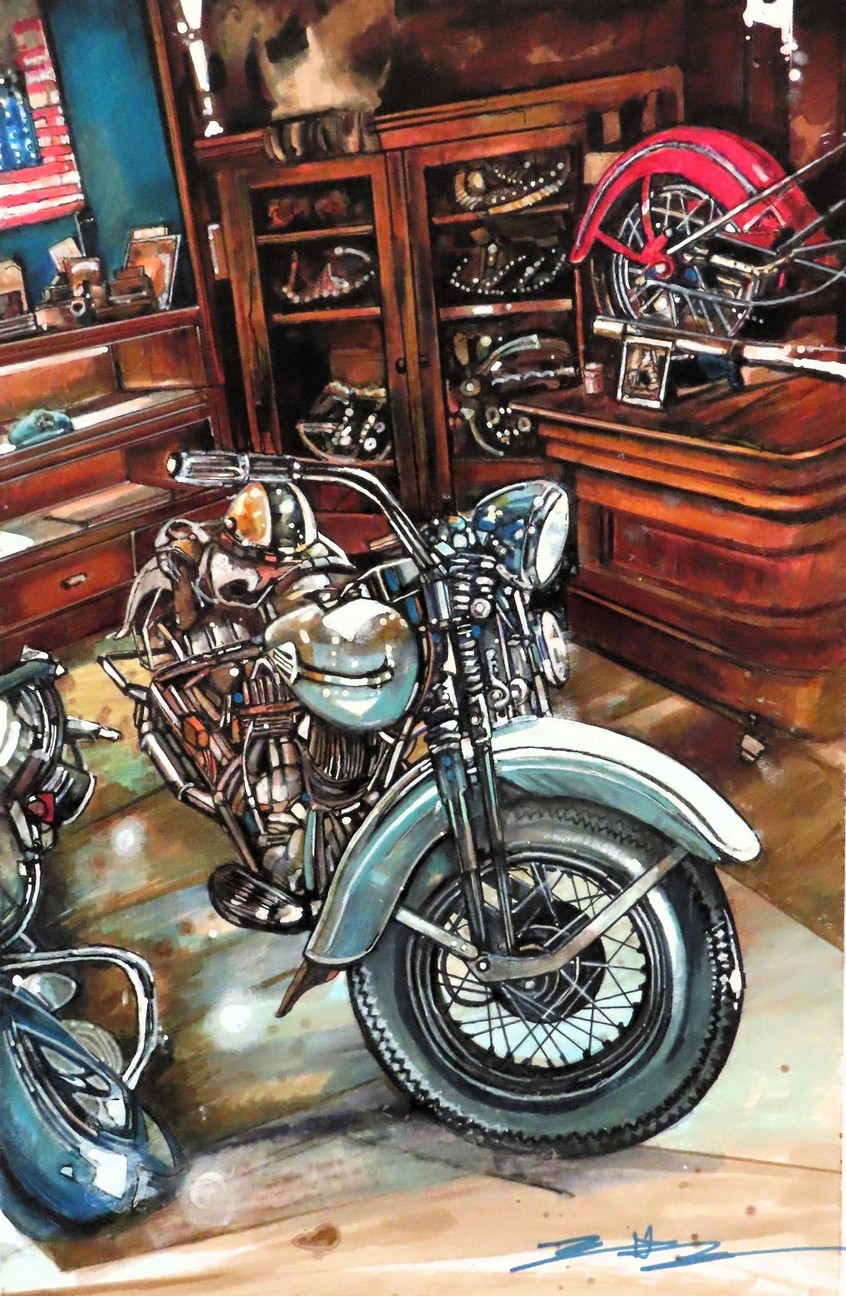 劉漢文《懷舊機車店》複合媒材,紙本 24x36cm