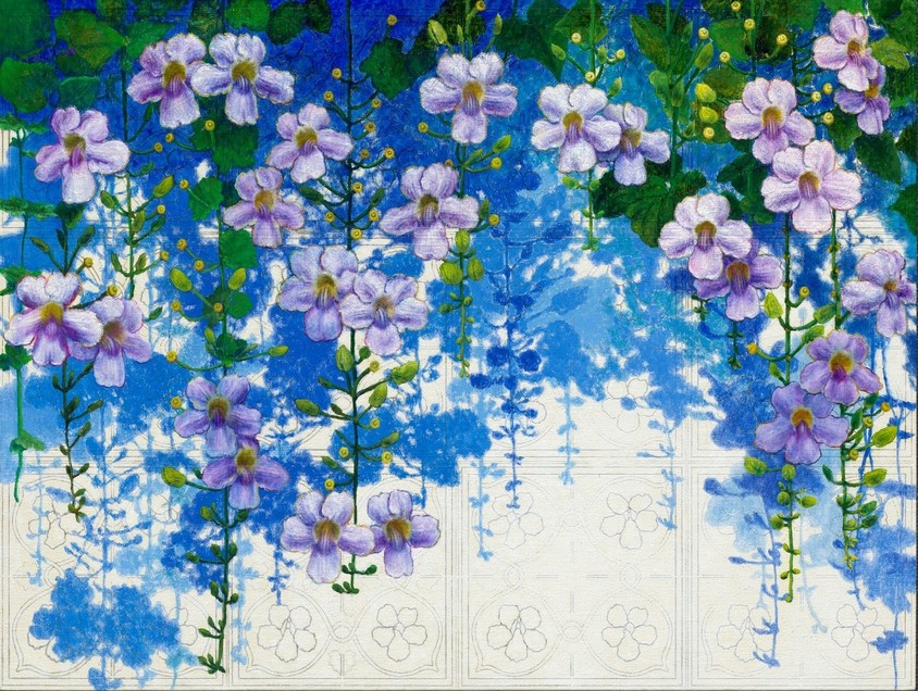 劉韋岑《臺灣花磚 - 大鄧伯花 4》油彩,麻布 80x60.5cm