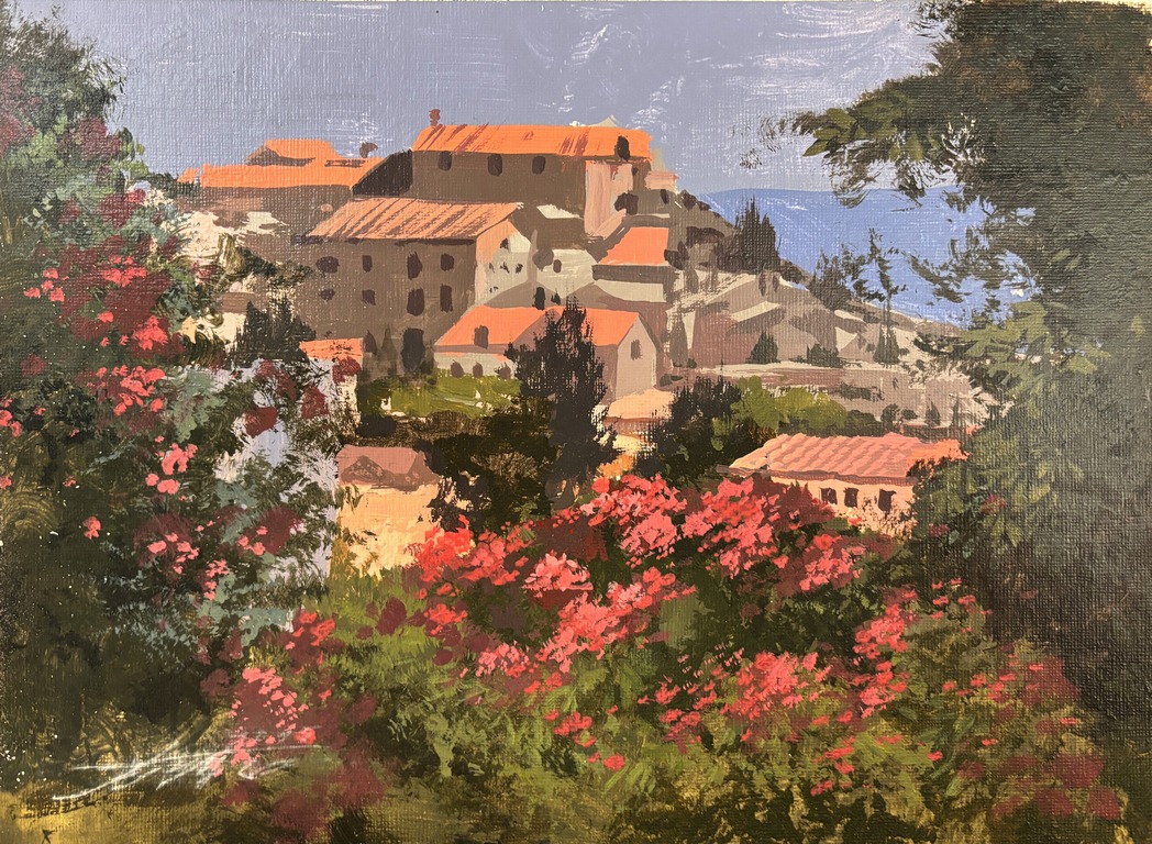 古雅仁《午後之丘:地中海小鎮光影》壓克力 30.5x23cm