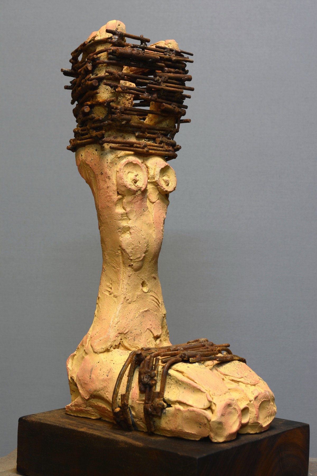余連春《L的狂想》土塑燒+鐵 17x22x42cm