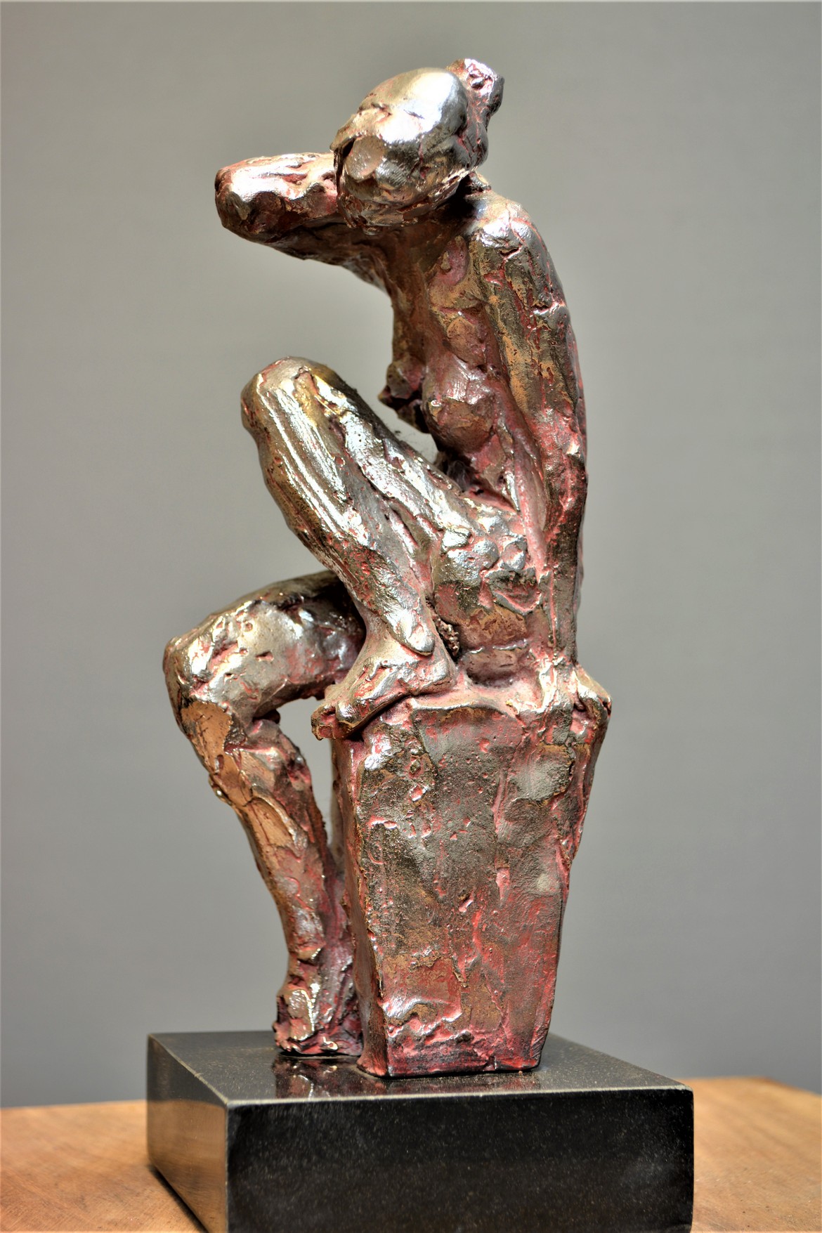 余連春《依戀》不銹鋼玫瑰銀色系 55x26x48cm