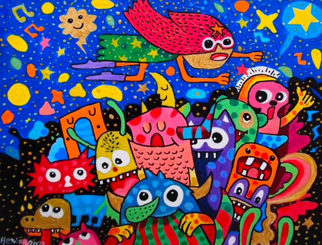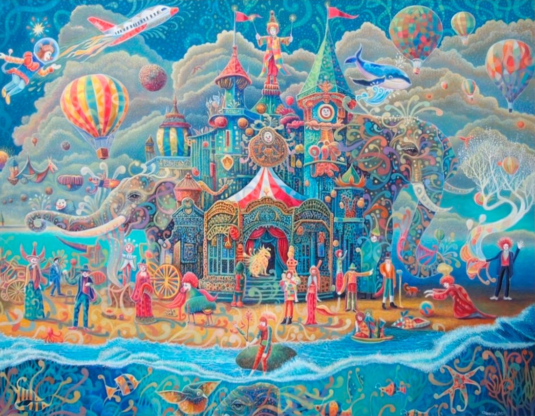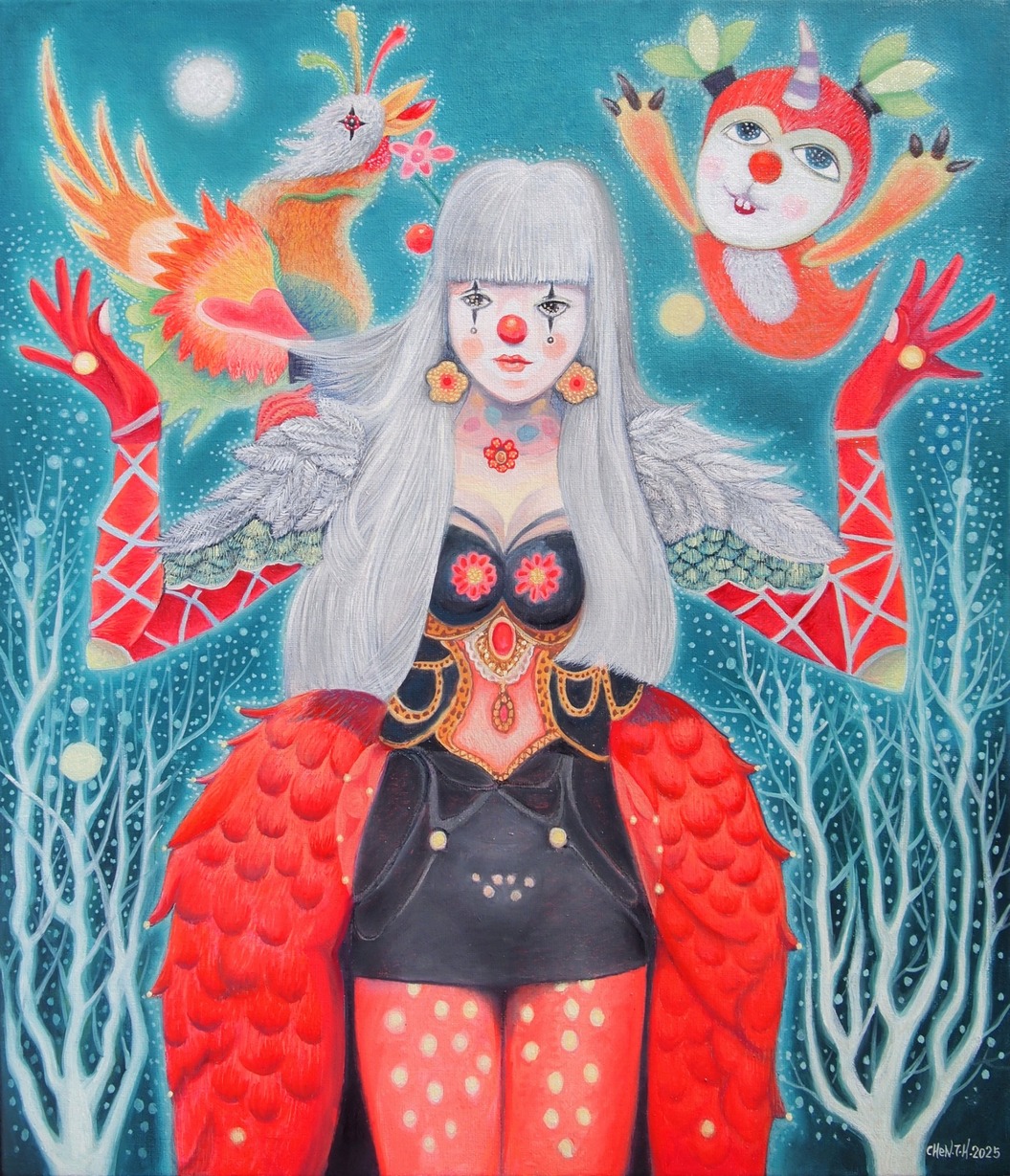 在《奇幻嘉年華》畫展中,藝術家透過創作描繪出心中的夢想世界,靈感來自夢境與幻想,融合夢幻色彩與美娜 多島等異場景,營造出充滿魔力的視覺旅程。陳泰華從藝術史、電影、動漫等多元創意中汲取養分,逐漸找到屬 於自己的風格與語言。每⼀幅畫作,都是對夢想的詮釋與延伸。這場展覽是藝術家創作歷程的縮影,期望觀者能 沉浸在這場無邊界的嘉年華中,感受幻想與現實交織而成的奇幻魅力。