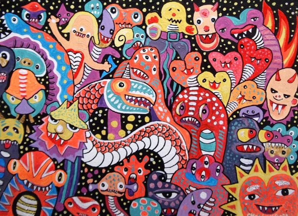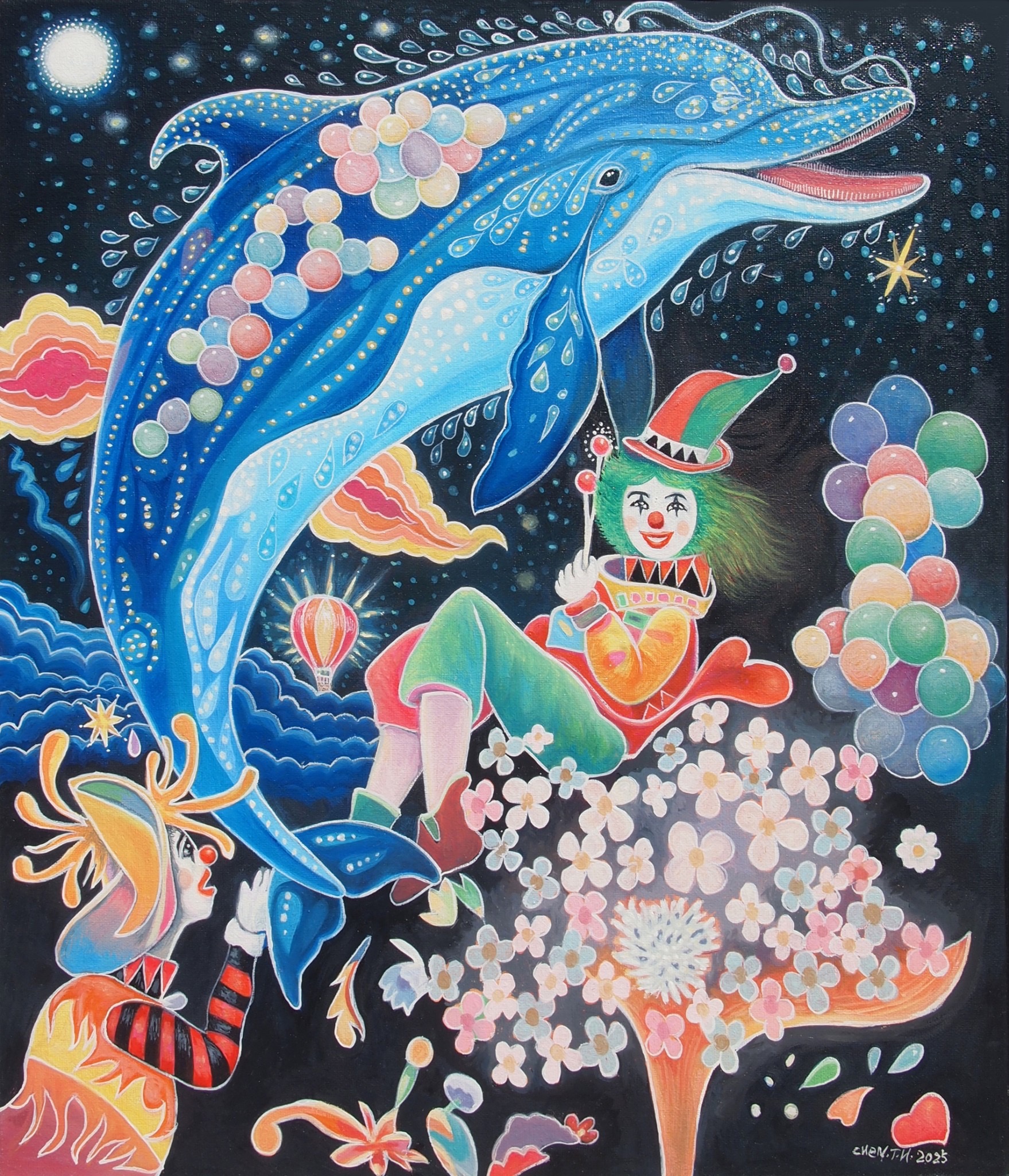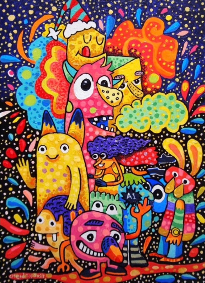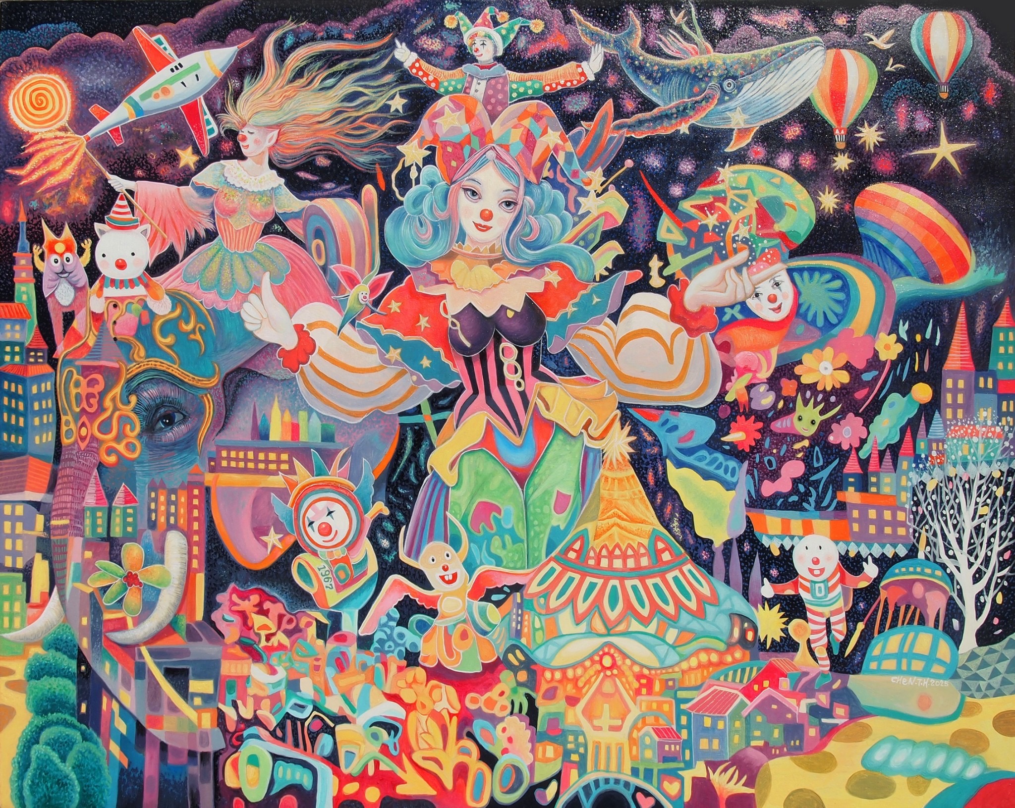 在《奇幻嘉年華》畫展中,藝術家透過創作描繪出心中的夢想世界,靈感來自夢境與幻想,融合夢幻色彩與美娜 多島等異場景,營造出充滿魔力的視覺旅程。陳泰華從藝術史、電影、動漫等多元創意中汲取養分,逐漸找到屬 於自己的風格與語言。每⼀幅畫作,都是對夢想的詮釋與延伸。這場展覽是藝術家創作歷程的縮影,期望觀者能 沉浸在這場無邊界的嘉年華中,感受幻想與現實交織而成的奇幻魅力。