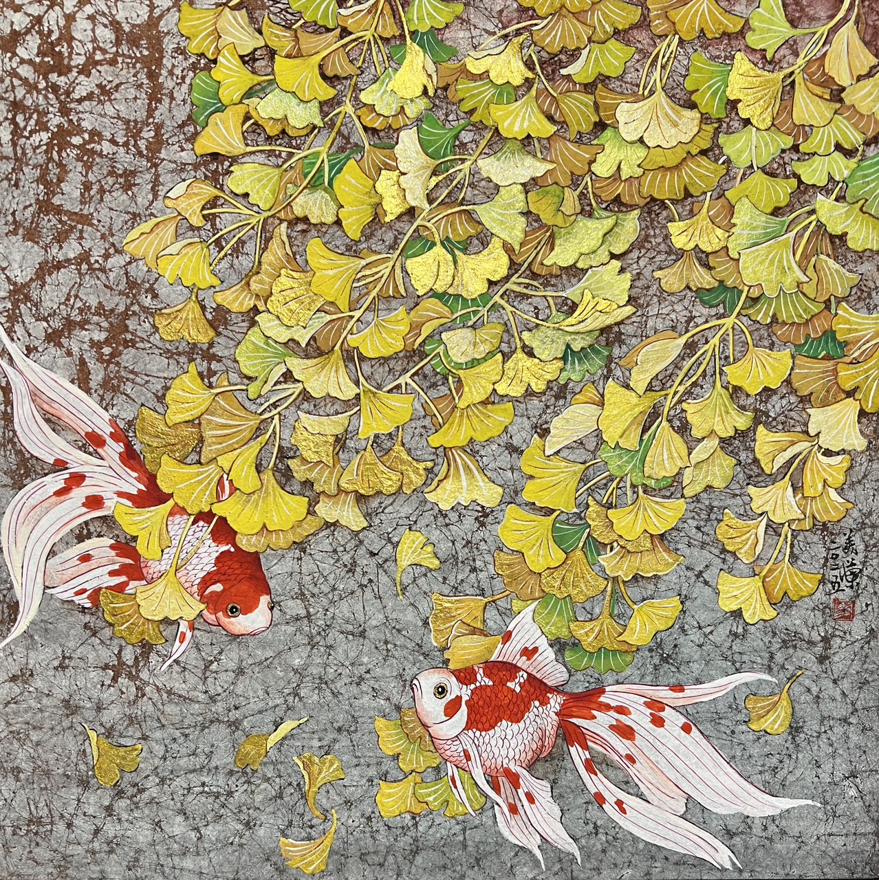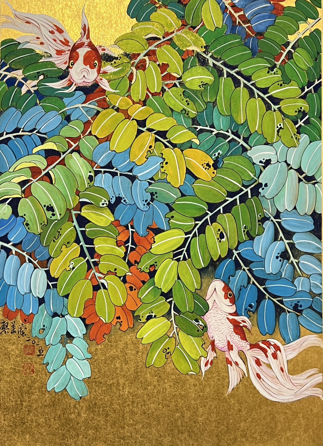 廖美蘭《金游》膠彩紙本 30x30cm